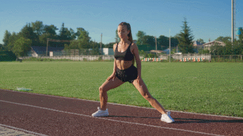 바닥에 서서 시작하며, 다리를 넓게 벌립니다. 그리고 왼쪽 무릎을 구부리면서 무게 중심을 이동하고, 오른쪽 다리는 완전히 펴주세요. 이번에는 오른쪽 무릎을 구부리면서 왼쪽 다리를 펴는 동작을 반복합니다. 1분간 진행하세요.