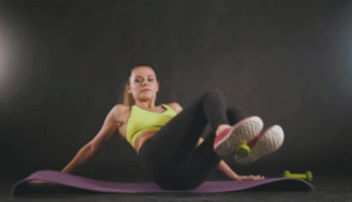 매트에 앉은 후, 팔을 벌려서 손바닥으로 바닥을 지탱합니다. 그리고 다리를 공중으로 들고, 무릎을 구부리세요. 그런 다음 다리를 왼쪽으로 틀었다가 돌아오고, 오른쪽으로 틀었다가 돌아옵니다. 비트는 동작을 1분간 진행하세요.