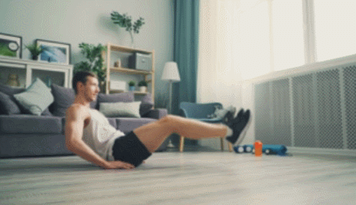 매트에 엉덩이를 대고 앉아서 시작합니다. 상체를 뒤로 누우면서 다리를 공중으로 띄우세요. 무릎은 살짝 구부려도 무방합니다. 그리고 상체와 하체를 당겼다가 펴는 동작을 1분 동안 반복하세요.