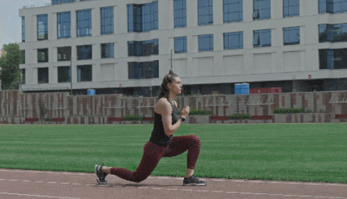 다리를 모으고 바닥에 서서 준비하세요. 그리고 오른쪽 다리를 앞으로 뻗고, 무릎을 구부리면서 런지 동작을 진행합니다. 그런 다음 점프 동작과 함께 다리의 위치를 바꿔서 왼쪽 다리를 앞으로 내딛고, 런지 동작을 반복합니다. 1분간 운동하세요.