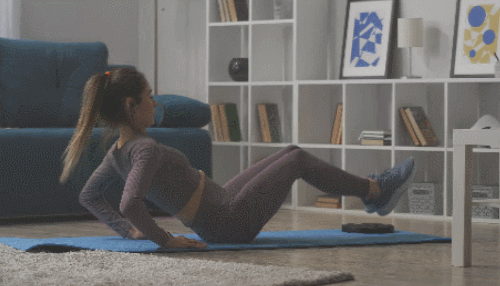 매트에 앉은 상태에서 손바닥을 바닥에 대고, 상체를 뒤로 젖히면서 다리를 살짝 띄웁니다. 그리고 상체를 세우면서 다리를 당겼다가 원래 자세로 돌아갑니다. 복부를 압박하면서 V업 동작을 1분 동안 운동하세요.