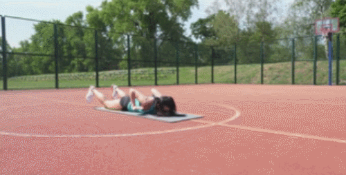 매트에 엎드린 상태에서 다리를 벌립니다. 그리고 손은 앞으로 뻗어주세요. 그런 다음 상체와 하체를 공중으로 올리면서 팔을 뒤로 보냈다가 착지하면서 원래 자세로 돌아옵니다. 1분 동안 슈퍼맨 변형 자세를 진행하세요.