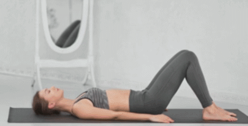 매트에 누운 상태에서 무릎을 세우고, 발을 바닥에 고정하세요. 그리고 팔을 바닥으로 누르면서 엉덩이를 공중으로 들어서 브릿지 자세를 만듭니다. 그런 다음 엉덩이를 내렸다가 드는 동작을 반복하세요. 1분간 운동합니다.