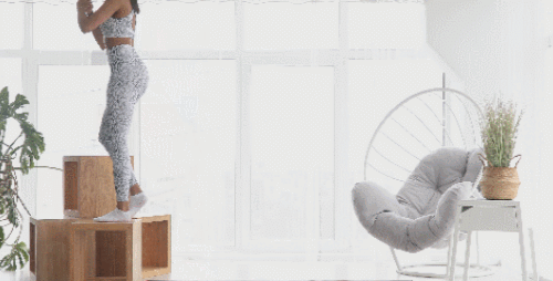 오를 수 있는 도구 앞에 서서 준비합니다. 그리고 손은 가슴 앞에서 모아서 잡습니다. 그런 다음 왼쪽 다리로 오르면서 오른쪽 다리를 당겨오고, 다시 오른쪽 다리로 바닥에 착지하세요. 왼발은 도구 위에 고정하고, 오른쪽 다리만 30초 움직입니다. 반대편 다리로 30초 동일하게 반복하세요.