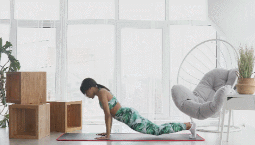 플랭크 자세로 엎드려서 준비합니다. 그리고 왼쪽 무릎을 당겼다가 되돌리면서 오른쪽 무릎을 당겨주세요. 무릎을 번갈아 당겨주면 되는데요. 점차 속도를 빠르게 높이면서 1분 동안 운동합니다.