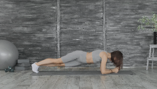 매트에 팔뚝을 대고 엎드려서 팔꿈치 플랭크 자세를 만듭니다. 그리고 엉덩이를 왼쪽으로 내리면서 균형을 유지했다가 돌아오고, 엉덩이를 오른쪽으로 내렸다가 돌아옵니다. 1분 동안 엉덩이를 좌우로 움직이세요.