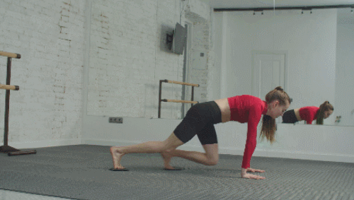 매트에 플랭크 자세로 엎드립니다. 그리고 다리를 당기는 동작을 반복하면 되는데요. 한쪽 다리를 당기거나 양쪽 다리를 동시에 당기는 동작을 반복할 수 있습니다. 1분 동안 반복하세요.