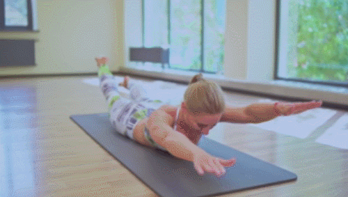 매트에 배를 대고 엎드립니다. 그리고 팔을 앞으로 뻗으세요. 그런 다음 상체와 하체를 동시에 공중으로 띄웁니다. 이번에는 왼팔을 들면서 오른발을 들었다가 오른팔을 들면서 왼발을 들어줍니다. 스위밍 동작을 1분간 진행하세요.