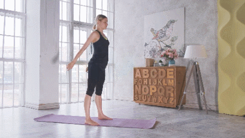 어깨너비보다 넓게 다리를 벌리고 서서 시작하세요. 그리고 무릎을 구부리면서 스쿼트 자세로 진입합니다. 이때 자세를 유지하고 2~3초 정도 버텼다가 원래 자세로 돌아옵니다. 1분 동안 반복하세요.