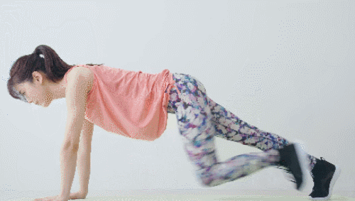 플랭크 기본자세로 엎드려서 시작합니다. 팔꿈치는 펴고, 시선은 바닥을 응시하세요. 그리고 왼쪽 다리를 당겼다가 되돌리고, 오른쪽 다리를 당겼다가 되돌립니다. 다리를 번갈아 움직이면서 1분간 운동하세요.