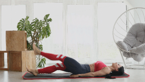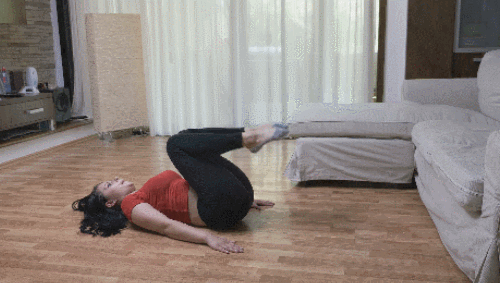 매트에 누운 상태로 등을 안정적으로 바닥에 고정하세요. 그리고 다리를 들고, 발끝을 뻗어줍니다. 그런 다음 무릎을 구부리면서 다리를 당겼다가 펴주는 동작을 반복하세요. 1분 동안 진행합니다.