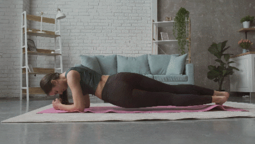 매트에 팔뚝을 대고 엎드리세요. 그리고 엉덩이를 오른쪽으로 내렸다가 돌아오고, 왼쪽으로 내렸다가 돌아옵니다. 엉덩이를 좌우로 움직이면서 1분 동안 운동하세요. 운동 중에는 자세를 유지합니다.