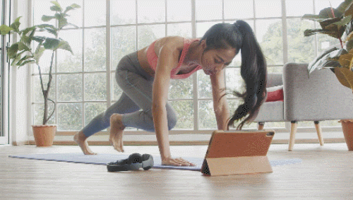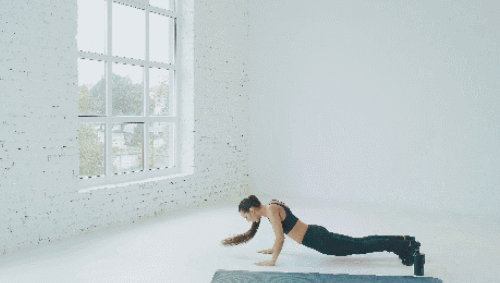 플랭크 기본자세로 매트에 엎드려서 준비하세요. 그리고 오른쪽 무릎을 당겼다가 되돌리면서 왼쪽 무릎을 당기는 동작으로 연결합니다. 처음에는 속도를 조절하다가 점차 빠르게 연결하세요. 1분 동안 운동합니다.