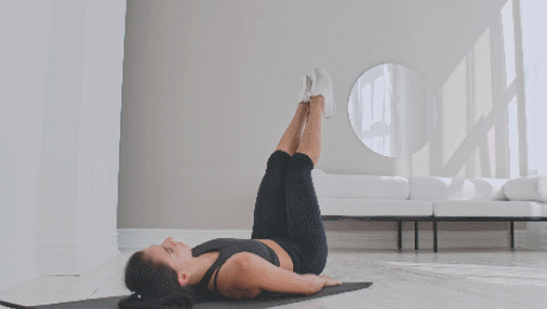 매트에 누워서 등은 바닥에 고정합니다. 그리고 다리를 들고, 발끝을 뻗어주세요. 그런 다음 시계 방향으로 원을 그리면서 다리를 돌려줍니다. 이번에는 반시계 방향으로 돌려주세요. 1분 동안 반복합니다.