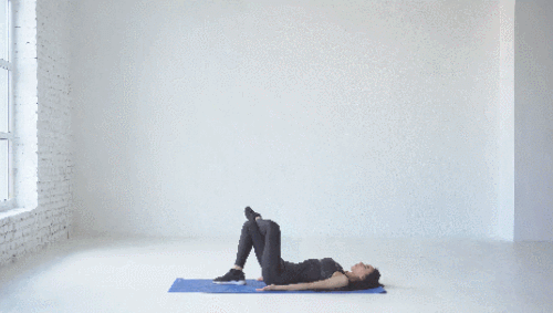 매트에 눕고, 무릎을 세웁니다. 그리고 왼쪽 다리는 오른쪽 다리 위에 걸칩니다. 그런 다음 엉덩이를 들어서 업다운 동작을 반복하세요. 30초 운동합니다. 이번에는 다리 위치를 바꿔서 30초 진행합니다.