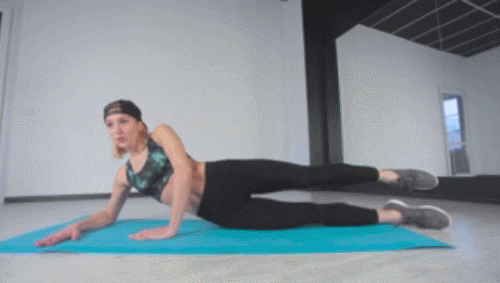 매트에 오른쪽 팔뚝을 대고 옆으로 눕습니다. 그리고 왼쪽 무릎을 당기면서 구부렸다가 펴는 동작을 반복하세요. 30초 운동합니다. 이번에는 반대편으로 돌아서 눕고, 오른쪽 무릎을 당기는 동작으로 30초 진행합니다.