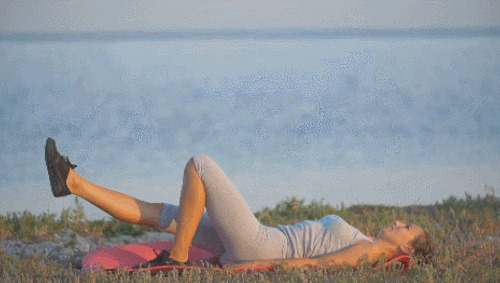 매트에 누운 후, 왼쪽 무릎은 세우고, 오른쪽 다리는 펴줍니다. 그리고 오른발을 공중으로 천천히 들었다가 내리는 동작을 30초 진행하세요. 이번에는 왼쪽 다리로 동일하게 30초 진행합니다.