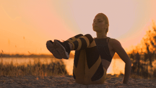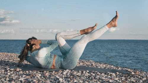 매트에 엉덩이를 대고 앉은 상태로 준비하세요. 손으로 바닥을 지탱합니다. 그리고 상체를 뒤로 젖히면서 다리는 뻗어주세요. 복부에 힘을 주면서 상체를 일으키고, 동시에 무릎을 당겨줍니다. 1분 동안 진행하세요.