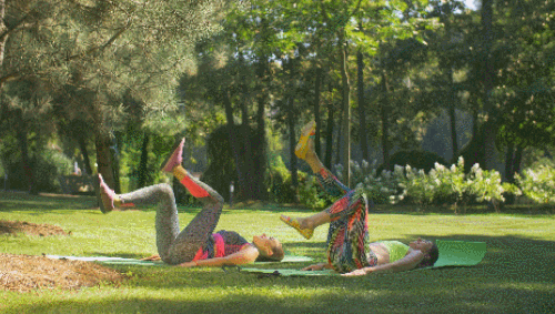 매트에 누운 상태로 다리는 공중으로 띄웁니다. 그리고 자전거를 타는 것처럼 번갈아 휘저으면 되는데요. 무릎을 구부렸다가 펴면서 진행합니다. 발끝은 뻗고, 움직임의 범위를 조절하면서 진행하세요. 1분간 운동합니다.