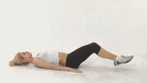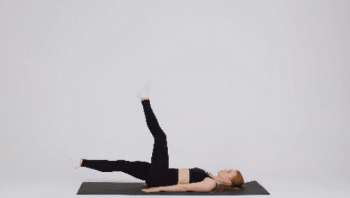 매트에 누운 상태로 다리는 공중으로 들어줍니다. 바닥과 90도 각도를 유지하고, 발끝은 뻗습니다. 그리고 다리는 당기면서 바닥에서 등을 최대한 떨어뜨렸다가 원래 자세로 돌아옵니다. 1분 동안 반복하세요.