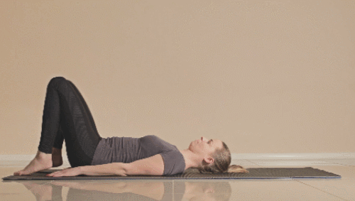 매트에 누워서 다리는 공중으로 띄웁니다. 그리고 머리 뒤로 완전히 넘기세요. 발끝을 바닥에 지탱하고, 자세를 유지하면서 버티면 되는데요. 손으로 허리를 지탱하거나 바닥에 대고 호흡합니다. 1분간 진행하세요.