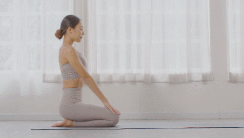 매트에 무릎을 꿇고 앉아서 준비하세요. 그리고 상체를 앞으로 숙이면서 팔을 뻗습니다. 가슴이 바닥에 닿을 수 있도록 하세요. 골반에서 무릎으로 떨어지는 라인을 직선으로 맞춥니다. 호흡을 유지하면서 1분 동안 반복하세요.