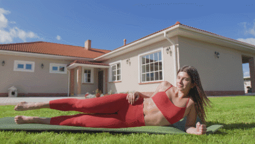 매트에 왼쪽 팔뚝을 대고 옆으로 누워서 준비하세요. 그리고 오른쪽 다리는 공중으로 들었다가 내리면 되는데요. 30초 진행합니다. 이번에는 오른쪽 팔뚝을 대고 옆으로 누워주세요. 그런 다음 왼쪽 다리로 30초 반복합니다.