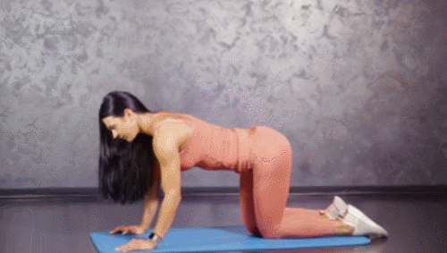 매트에 엎드린 상태로 무릎을 바닥에 댑니다. 그리고 오른쪽 다리는 뒤로 뻗었다가 당깁니다. 엉덩이의 움직임에 집중하면서 30초 동안 반복 운동하세요. 왼쪽 다리로 30초 진행하세요.