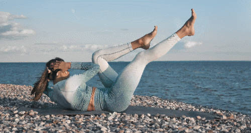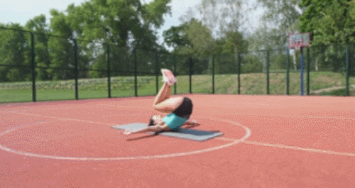 매트에 앉아서 몸을 뒤로 구릅니다. 그리고 팔을 옆으로 펼치면서 다리는 최대한 공중으로 들어줍니다. 그런 다음 원래 자세로 돌아오면서 몸을 일으켜 세웁니다. 구르는 동작을 1분 동안 반복하세요.