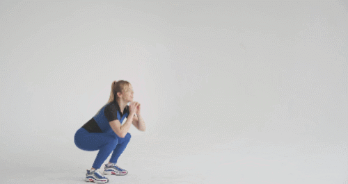 어깨너비보다 넓게 다리는 벌리고 서서 스쿼트 동작을 시작하세요. 엉덩이를 내렸다가 돌아오면서 오른발을 앞으로 뻗어줍니다. 동시에 왼손을 내려서 손으로 발을 터치하세요. 이번에는 스쿼트 후, 왼발을 앞으로 뻗고, 오른손으로 발을 터치합니다. 1분간 진행하세요.