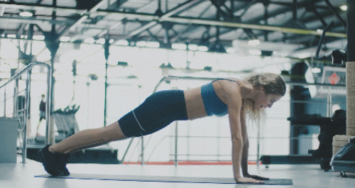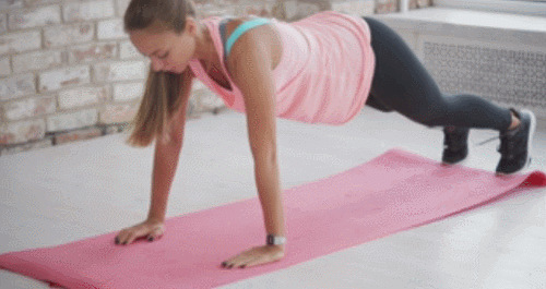 플랭크 자세로 엎드리세요. 그리고 오른쪽 팔꿈치를 구부리고, 왼쪽 팔꿈치를 구부려서 팔꿈치 플랭크 자세로 전환합니다. 다시 팔꿈치를 펴고 원래 자세로 돌아옵니다. 1분 동안 업다운 동작을 반복하세요.