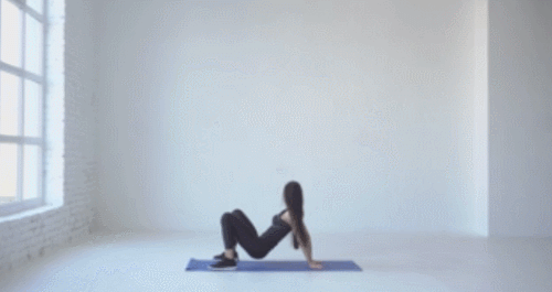 매트에 앉아서 다리는 펴줍니다. 그리고 왼손을 바닥으로 누르면서 몸을 공중으로 띄우고, 오른손은 대각선 방향으로 뻗어줍니다. 이번에는 몸을 들면서 왼손을 뻗는 동작으로 연결하세요. 1분 동안 진행합니다.