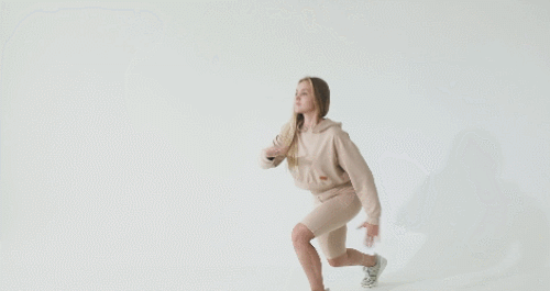 바닥에 서서 오른쪽 다리는 뒤로 뻗어서 런지 동작을 진행합니다. 그리고 원래 자세로 돌아오면서 점프 동작과 함께 무릎을 공중으로 올리세요. 30초 진행합니다. 이번에는 왼쪽 다리로 동일하게 30초 반복하세요.