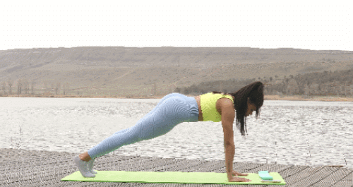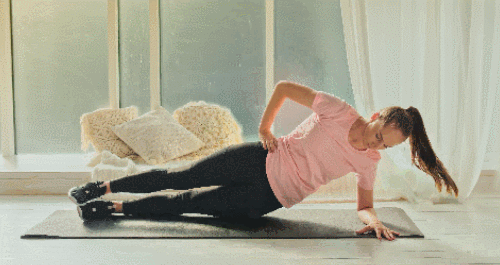 왼쪽 팔뚝을 대고 옆으로 눕습니다. 그리고 엉덩이를 들어서 사이드 팔꿈치 플랭크 자세를 만드세요. 그런 다음 엉덩이를 내렸다가 들면서 업다운 동작을 30초 진행합니다. 자세를 바꿔서 반대 방향으로 30초 반복하세요.