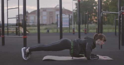 매트에 엎드려서 팔뚝으로 몸을 지탱하는 팔꿈치 플랭크 자세를 잡습니다. 시선은 바닥을 향하고, 몸은 전체적으로 곧게 뻗은 상태를 유지하세요. 1분 동안 버티면 되는데요. 버티는 시간을 점차 늘리면서 운동합니다.
