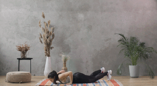 매트에 플랭크 기본자세로 엎드립니다. 그리고 왼쪽 무릎을 상체 방향으로 당겼다가 되돌리고, 오른쪽 무릎을 당기는 동작으로 연결합니다. 시선은 바닥을 응시하면서 1분 동안 무릎을 번갈아 당겨주세요.