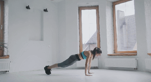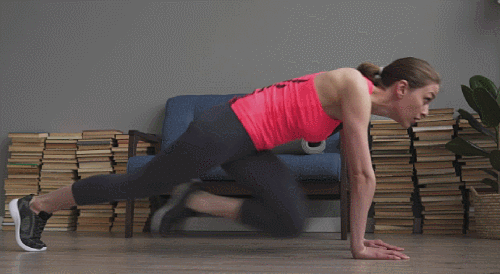 매트에 플랭크 기본자세로 엎드립니다. 그리고 오른쪽 무릎을 당겼다가 되돌리고, 왼쪽 무릎을 당겼다가 되돌립니다. 처음에는 천천히 시작하고, 점차 속도를 높이면서 빠르게 움직입니다. 1분 동안 진행하세요.