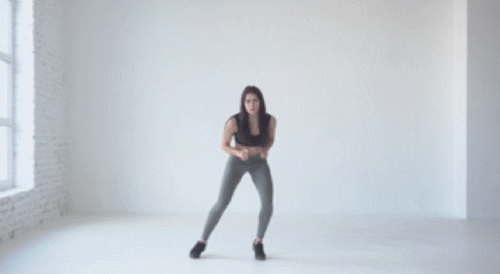 바닥에 서서 발을 모아줍니다. 그리고 오른발을 오른쪽으로 이동하면서 사이드 스쿼트 동작을 진행하고 돌아옵니다. 이번에는 왼발을 왼쪽으로 이동하면서 사이드 스쿼트 동작을 진행하세요. 좌우로 움직이면서 1분 동안 운동합니다.