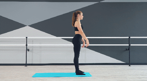 다리는 넓게 벌리고 바닥에 서서 시작하세요. 손은 가슴 앞에서 모아줍니다. 그리고 무릎을 구부리면서 엉덩이를 내리고, 와이드 스쿼트 동작을 진행합니다. 1분 동안 스쿼트 동작을 진행하세요. 시선은 정면을 응시합니다.