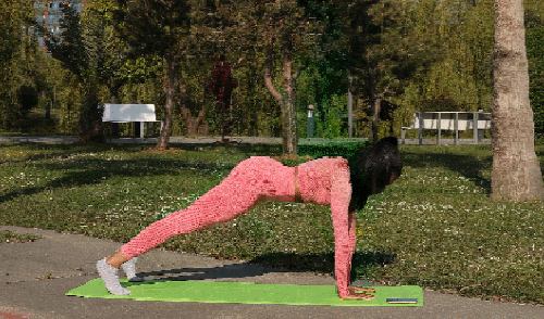 매트에 플랭크 기본자세로 엎드려서 준비하세요. 그리고 왼발을 공중으로 들었다가 내리면서 오른발을 공중으로 들었다가 내려줍니다. 발을 번갈아 드는 동작을 반복하세요. 1분 동안 운동합니다. 시선은 바닥을 응시하세요.
