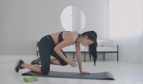 매트에 네발기기 자세로 엎드립니다. 그리고 오른팔을 앞으로 뻗으면서 왼발을 뒤로 뻗습니다. 그런 다음 복부를 향해 당겼다가 다시 뻗어주세요. 30초 동안 진행합니다. 이번에는 왼팔과 오른발로 동일하게 30초 반복합니다.