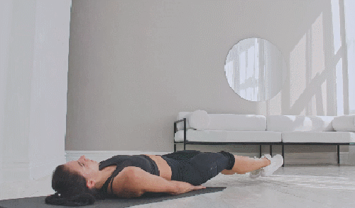 매트에 누운 상태로 손은 골반 아래로 가져갑니다. 그리고 다리는 공중으로 들어주세요. 그런 다음 원을 그리면서 발을 돌려주면 되는데요. 30초 운동 후, 반대 방향으로 원을 그리면서 30초 동안 돌려주세요.