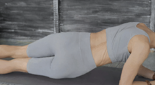 매트에 팔뚝을 대고 엎드려서 팔꿈치 플랭크 자세로 시작하세요. 그리고 자세를 유지하면서 엉덩이를 왼쪽으로 내렸다가 돌아오고, 오른쪽으로 내렸다가 돌아옵니다. 엉덩이를 좌우로 움직이면 되는데요. 시선은 바닥을 응시하면서 1분 동안 운동합니다.