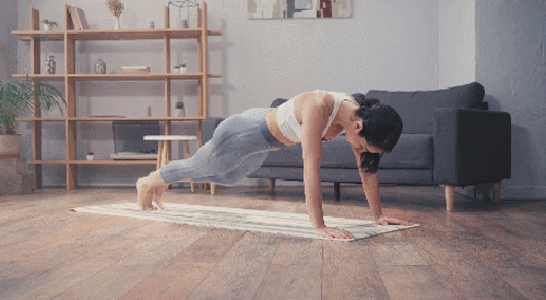 매트에 엎드려서 엉덩이를 높이 드는 다운도그 자세를 만듭니다. 그리고 시선은 발끝을 향하고, 무릎은 최대한 펴줍니다. 그런 다음 팔꿈치를 구부렸다가 펴는 동작을 추가하세요. 코브라 자세로 전환할 수 있습니다. 1분 동안 반복하세요.