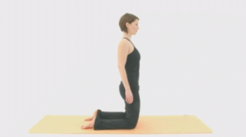 매트에 무릎을 꿇고 앉아서 준비합니다. 그리고 상체를 앞으로 숙이면서 팔을 뻗어주세요. 이마는 바닥에 붙인다는 생각으로 상체를 늘여줍니다. 엉덩이가 발꿈치에서 떨어지지 않도록 자세를 유지하세요. 1분 동안 반복합니다.