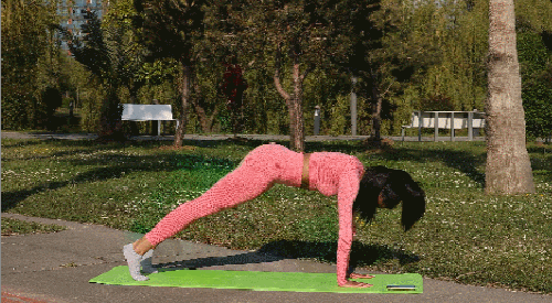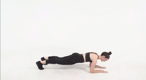 매트에 플랭크 자세로 엎드려서 준비하세요. 그리고 엉덩이를 들면서 다운도그 자세로 전환합니다. 그런 다음 무릎을 구부려서 네발기기 자세를 만들었다가 원래 자세로 돌아오면, 1회가 완료됩니다. 1분 동안 반복하세요.