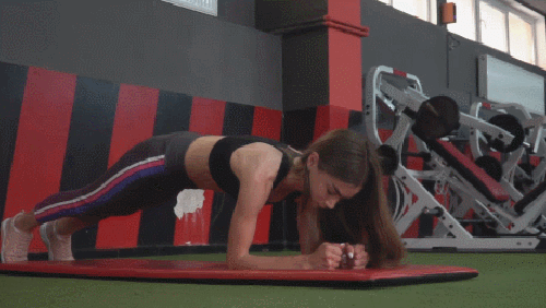 매트에 플랭크 자세로 엎드립니다. 그리고 팔꿈치를 차례로 구부려서 팔꿈치 플랭크 자세로 전환하세요. 다시 팔꿈치를 펴고, 원래 자세로 돌아옵니다. 그런 다음 왼손을 들어서 오른쪽 어깨를 터치하고, 오른손을 들어서 왼쪽 어깨를 터치합니다. 1분간 진행하세요.