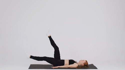 매트에 등을 대고 누운 상태로 손은 골반 아래로 이동합니다. 그리고 다리는 공중으로 들어주세요. 그런 다음 왼발을 바닥으로 내렸다가 들면서 오른발을 바닥으로 내려줍니다. 발을 교차하면서 운동을 진행하세요. 1분 동안 반복합니다.