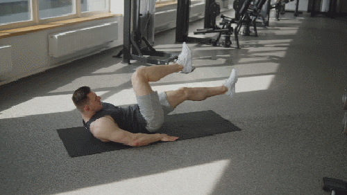 매트에 누운 상태에서 다리는 공중으로 들고, 무릎을 구부립니다. 손은 머리 뒤로 보내서 잡으세요. 그리고 상체를 일으키면서 복부 전체를 자극했다가 원래 자세로 천천히 돌아갑니다. 1분 동안 운동하세요. 복부의 긴장감을 유지합니다.