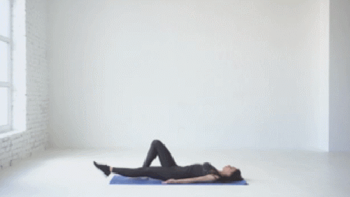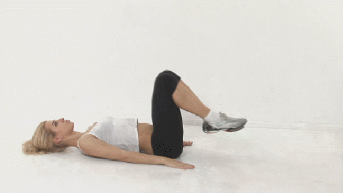 매트에 완전히 누운 상태에서 준비하세요. 그리고 왼발을 공중으로 천천히 들었다가 내립니다. 이번에는 오른발을 공중으로 들었다가 내리세요. 발을 번갈아 들어주면 되는데요. 1분 동안 운동합니다. 상체는 바닥에 고정하세요.